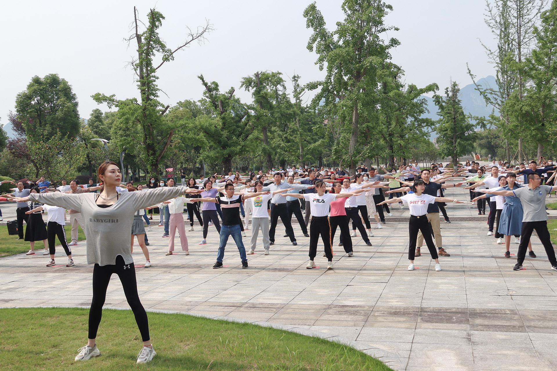随后,参加仪式的教职工代表一起做了两遍广播体操,在熟悉的广播体操旋律中舒展双臂,昂首挺胸,迈开双腿,在运动中传递“健康工作、幸福生活”的理念。