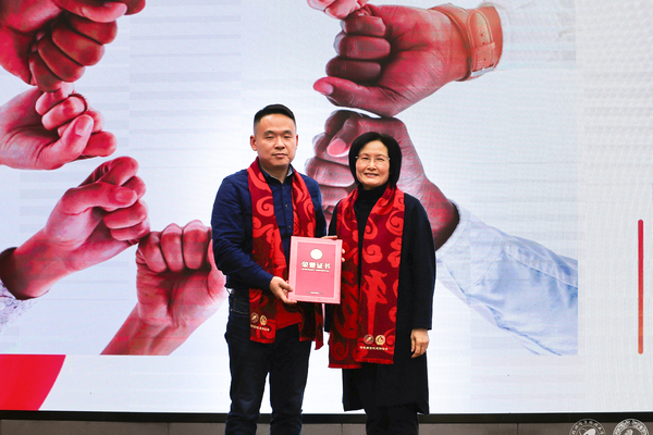 校长张文涛为第四届理事会名誉会长颁发聘书