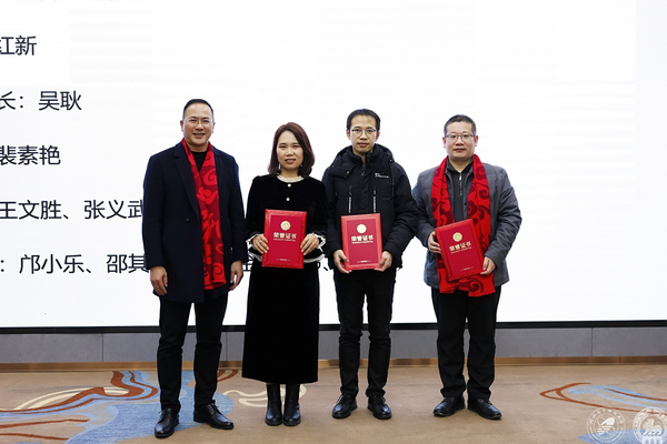 副校长潘开林、张波为第四届理事会副会长颁发聘书