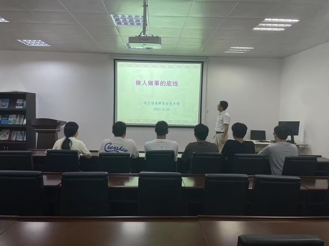 6月30日,电子信息研究生党支部在11教院士工作站召开党员大会,学院副院长韩国成为电子信息研究生党支部授课,本次党课的主题是“做人做事的底线”。