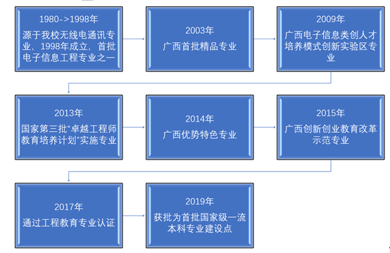 2009年,获批为广西电子信息类创新人才培养模式创新实验区专业。