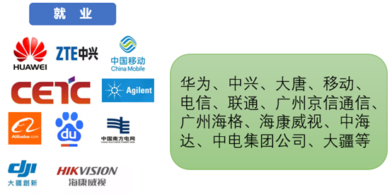 毕业生可从事电子设备、信息系统和通信系统的研究、设计、制造、应用和开发工作。可在通信、电子、信息与通讯等多类型部门从事研发、管理、销售和技术支撑等工作。本专业就业质量高,集中分布于珠江三角洲和长江三角洲地区,在电子信息行业内有较强的影响力,深受社会广泛好评。