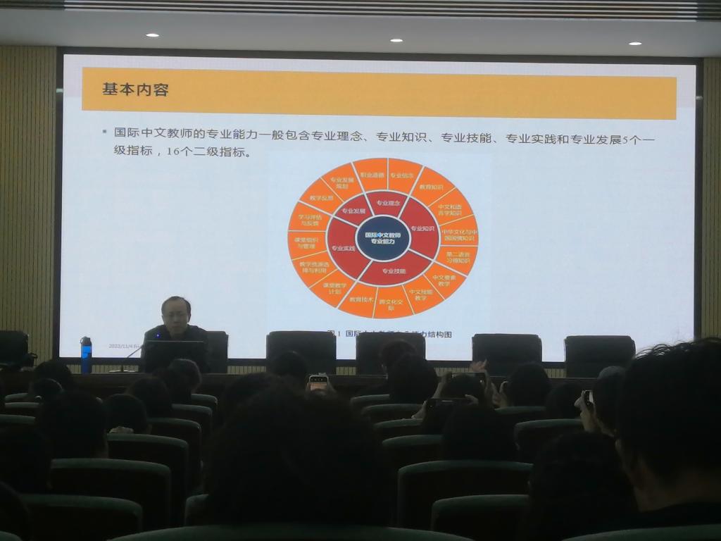 在本次讲座中,张林老师分析讲解了2022年8月26日由世界汉语教学学会发布的《国际中文教师专业能力标准》。重点介绍了《国际中文教师专业能力标准》的出台来龙去脉,和该标准的5个一级、16个二级指标及其具体描述。张林老师的讲座深入浅出,语言生动活泼,与汉语国际教育专业人才培养的实际结合紧密,让聆听讲座的同学们进一步加深了对汉语国际教育专业的认识,明确了专业学习的目标,有助于同学们树立正确的国际中文教师职业发展观。