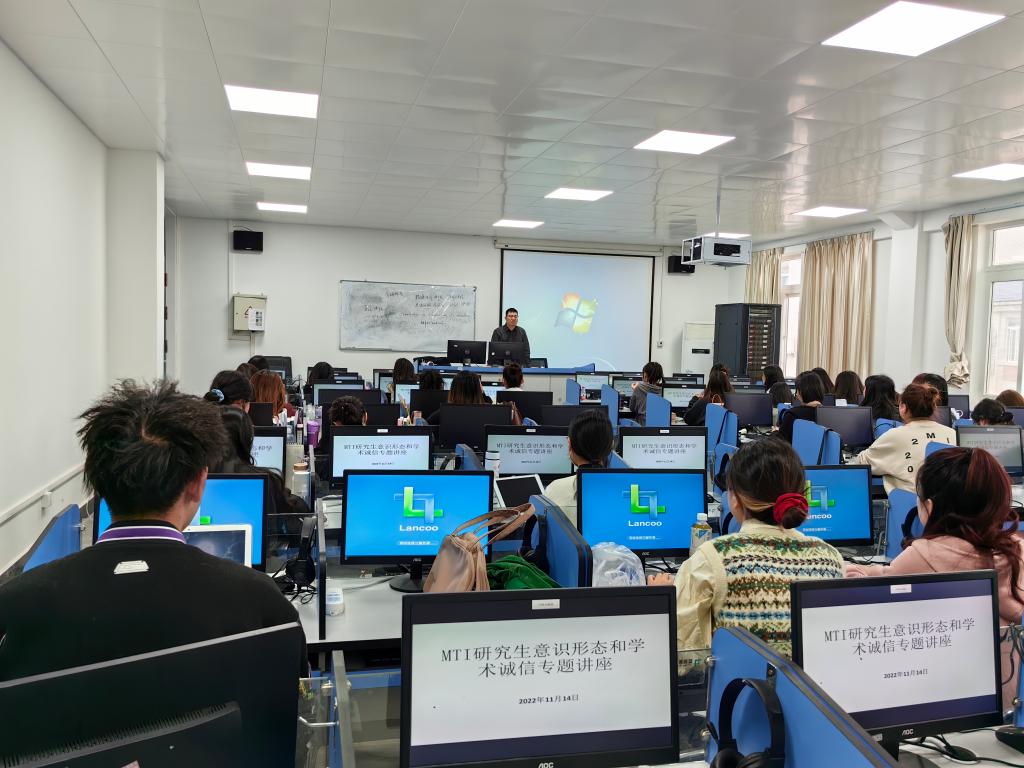 11月14日,研究生系主任全峰在3501面向2022级研究生开展意识形态及学术诚信教育,研究生辅导员及2022级全体研究生参加。