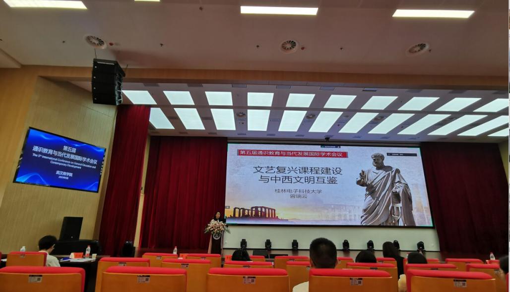 会上,曾瑞云副教授发表了题为“文艺复兴与中西文明互鉴”的主旨演讲。她从课程建设指导原则、线上课程建设思路、线下课程建设思路、文艺复兴课程教学四个方面介绍了我院英语通识课程的建设经验。