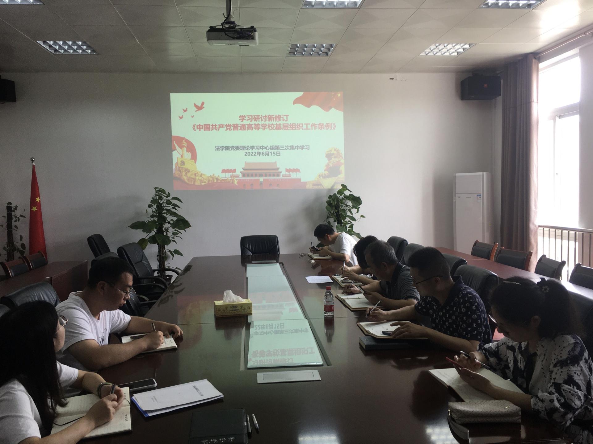 6月15日,法学院党委理论学习中心组在1教316会议室召开本年度第三次学习会议。学院党委委员、各支部书记、组织员参加会议,会议由学院书记蒋小斌主持。