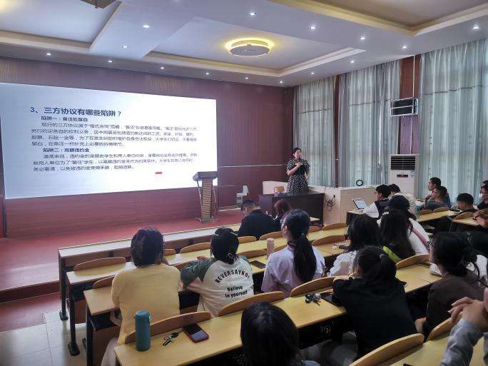 11月13日下午,学院召开2023届毕业生就业动员会。会上,毕业班辅导员付瑶老师围绕签约注意事项、求职注意事项、警惕招聘陷阱等方面进行了讲解,并现场解答了当前困扰学生的就业相关问题,鼓励大家尽快找工作,树立勤学责任意识,了解就业当前的紧迫性,同时要关注个人发展方向的选择和努力。