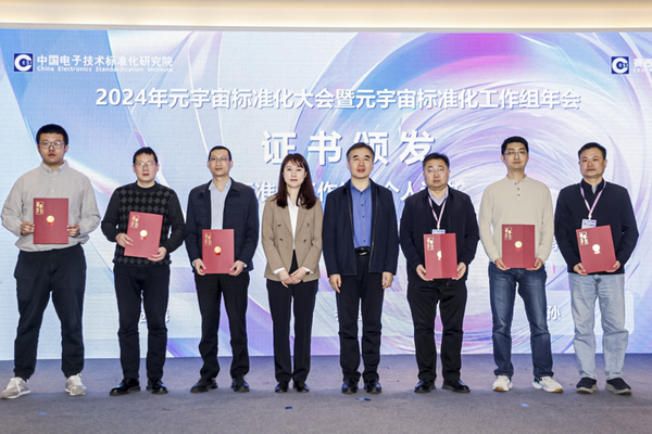 元宇宙标准化工作组是工业和信息化部主管的行业标准化技术组织,由中国电子技术标准化研究院担任工作组秘书处单位。本次工作组年会总结了2024年度工作和部署了2025年工作计划,同时举行了专题组目标责任书签署仪式,并为专题组组长、联合组长单位授牌。会议发布了《链接元宇宙:技术与发展》《空间计算发展报告(2024年)》两份研究报告,颁发了元宇宙标准化工作组典型案例、首批《元宇宙 参考架构》国家标准试点验证单位、标准化工作先进委员、先进个人、先进集体证书。