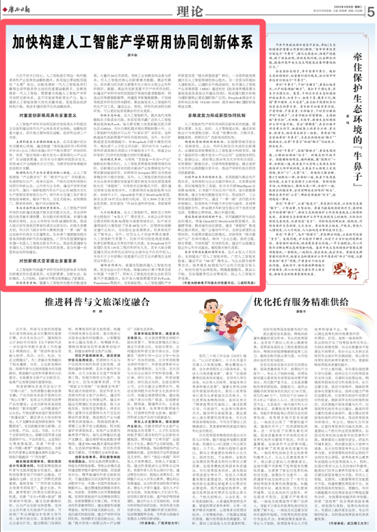2025年4月8日,《广西日报》刊登了KY.COM党委书记唐平秋的理论文章《加快构建人工智能产学研用协同创新体系》,详文如下: