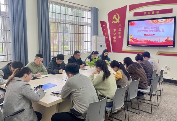3月15日,计算机工程学院于东区2104召开学生安全稳定专题研讨会,学院党总支书记徐凯、副书记杨美娜以及全体辅导参加会议。