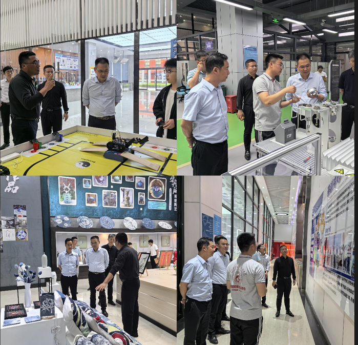 在贵州工业职业技术学院,调研组一行先后参观调研了双创中心、陶艺展厅、中德赛训中心、退役军人基地、电子竞技实训室、国学素养基地、国家山地自行车集训基地、贵州省青少年网络安全科普示范基地。走访中,双方对办学环境、学科专业建设、区域服务、数智化教学实践等进行了深入探讨。通过交流,双方进一步明确,新时代工科教育应抓住自身优势特色,服务地区经济发展需求。