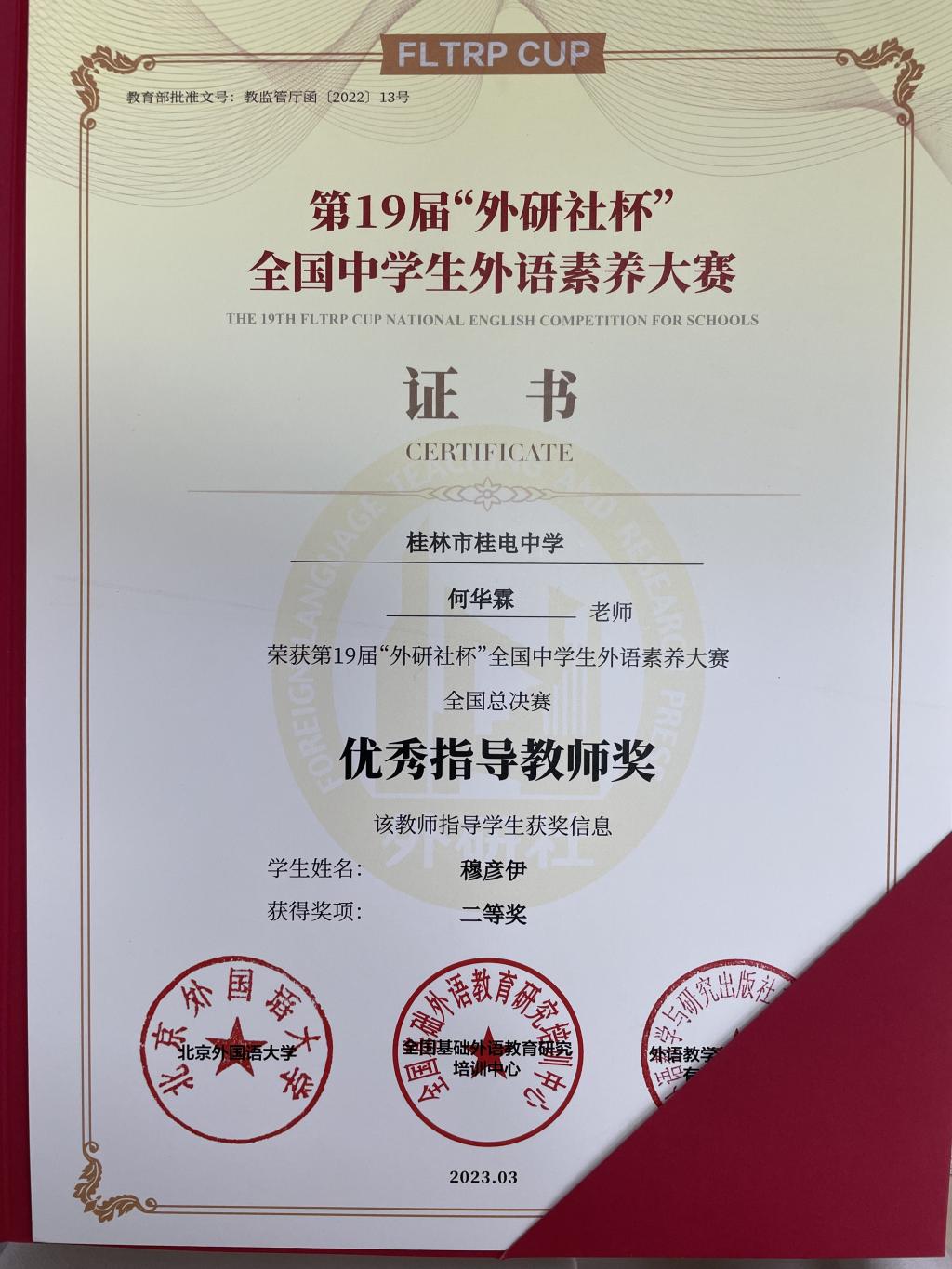 在第19届“外研社杯”全国中学生外语素养大赛中,