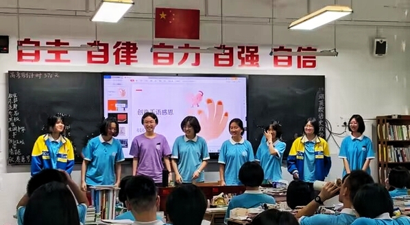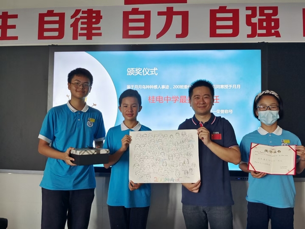 初一196班的同学们代表全体桂电中学学子为全校老师送上诗歌朗诵《有一种美好,叫老师》,表达了对“乐于奉献,积极进取,敢为人先,永不言败”的桂电中学老师们的赞美与感谢。