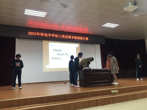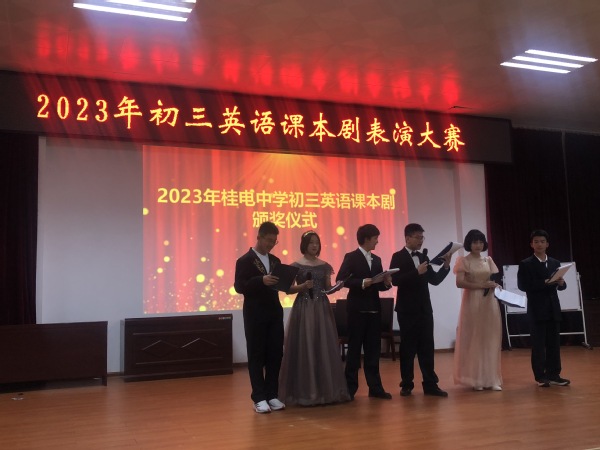 “演绎经典故事,展示英语风采”——初三年级英语课本剧表演大赛时间:[2023-12-05] 来源:桂电中学 点击数:58