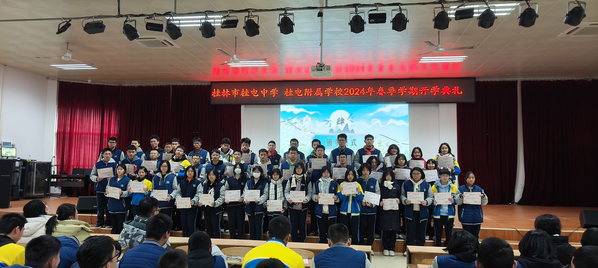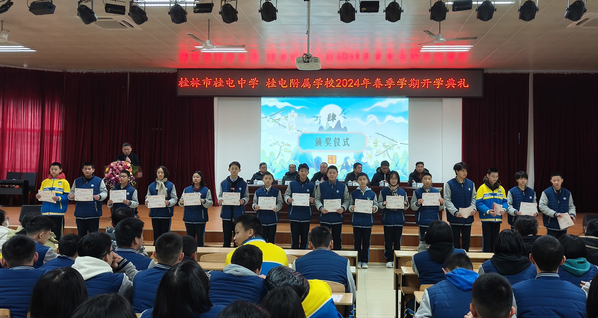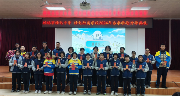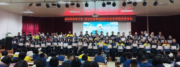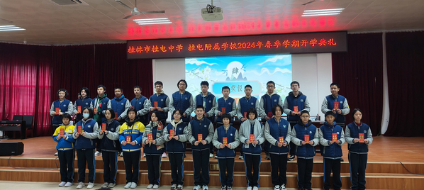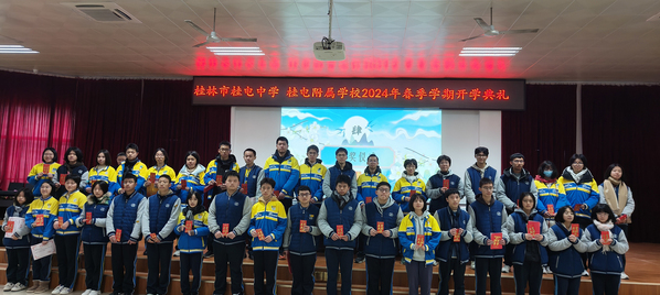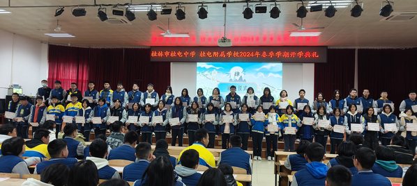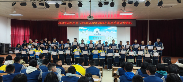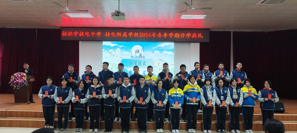 桂林市桂电中学、桂电附属学校举行2024年春季学期开学典礼时间:[2024-02-26] 来源:桂电中学 点击数:765