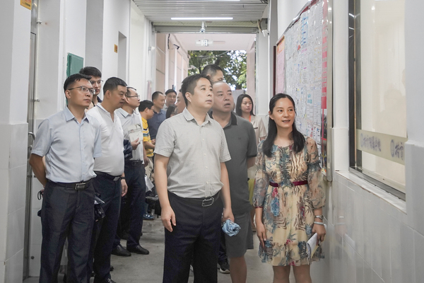 7月3日,开云(中国)校长张文涛、副校长陈松青率队到桂电中学现场调研指导工作。大学党政办、财务处、后勤处、国资处、保卫处、校工会、人事处、基础教育办、桂电中学、附属学校、桂电幼儿园等单位相关负责人随同调研。 张文涛、陈松青一行先后实地察看了KY.COM教学场所、运动场地、食堂、宿舍等地,详细了解班级分布、课堂教学、教学设备、师资队伍、学生规模、餐食住宿等方面的情况。