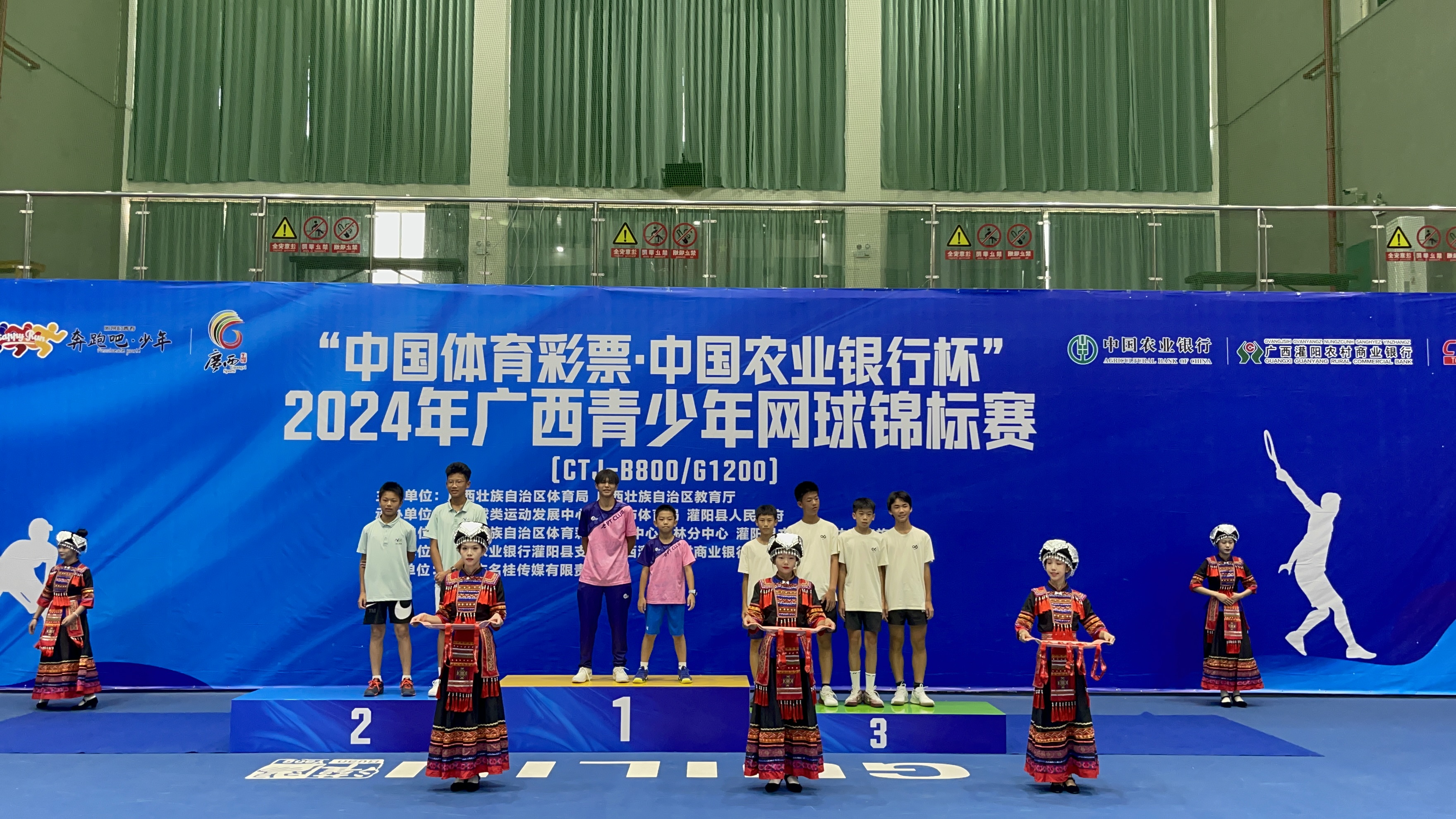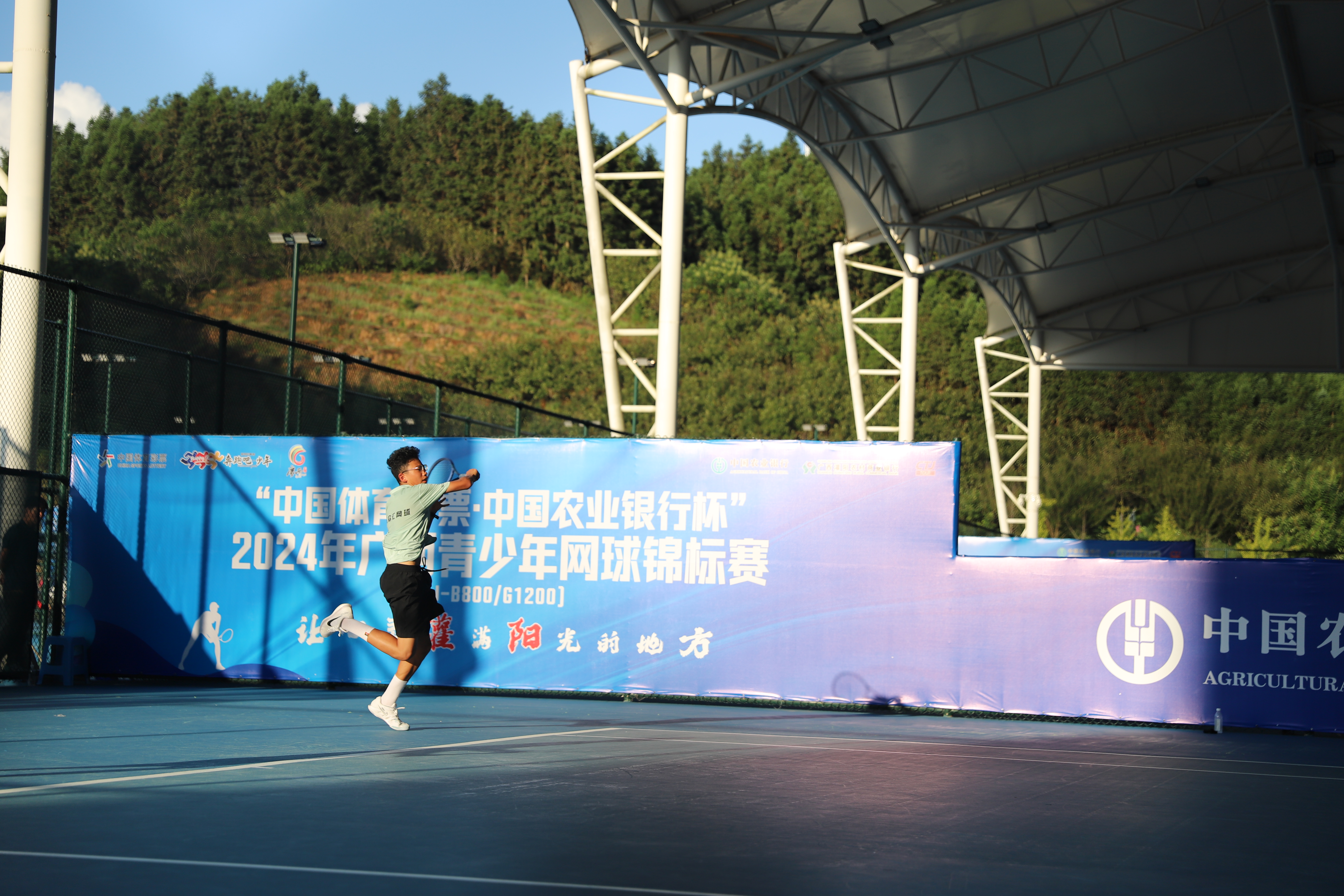 2024年广西青少年网球锦标赛在灌阳网球中心圆满落幕,KY.COM196班岑伟铭同学携手队友,在男乙双打项目中表现出色,荣获亚军。