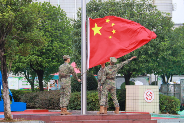 为筑牢学生的爱国情怀,增强学生国防观念,培养学生吃苦耐劳、团结拼搏精神,桂电中学将开展为期七天的2024级新生军训。8月12日,2024级新生军训动员大会在田径场举行,桂电中学校级领导、军训教官、2024级高一年级班主任及全体新生参加。 伴随着铿锵嘹亮的国歌,五星红旗冉冉升起,桂电中学2024级新生军训动员大会正式拉开帷幕。 校长彭剑波作军训动员讲话,对担任此次军训任务的教官表示热烈欢迎!对即将迎接军训挑战的同学们提出三点要求:一要充分认识军训的意义,增强军训的自觉性;二要以振奋的精神面貌,聚精会神搞好军事训练,接受军训的考验;三要把学习军人严明的纪律,过硬的作风,和自觉地遵守学校的一切规章制度结合起来,努力做一个遵纪守法的中学生。 高76班唐中骏同学代表高一新生发言,表达了对军训的期待和决心。他表示将听从教官指挥,服从管理安排,同时也呼吁全体新生不畏艰难,迎难而上,在军训中发扬桂电学子自主、自律、自立、自强、自信的“五自”精神! 承训教官进行了科目示范表演,他们精神抖擞,步伐整齐,动作有力,展示了军人的风采。 军训是进入高中的第一课,是强健体魄、塑造集体主义精神、锤炼个人意志、提高行为效率的重要路径。铿锵有力的军歌已然奏响,愿2024级新生自立自强、勇于挑战、磨炼意志,在接下来为期七天的军训中淬炼成长,以昂扬的斗志和焕然一新的精神风貌投入紧张而又充实的高中生活。 (供稿人:邓玉婷,审稿:政教处)