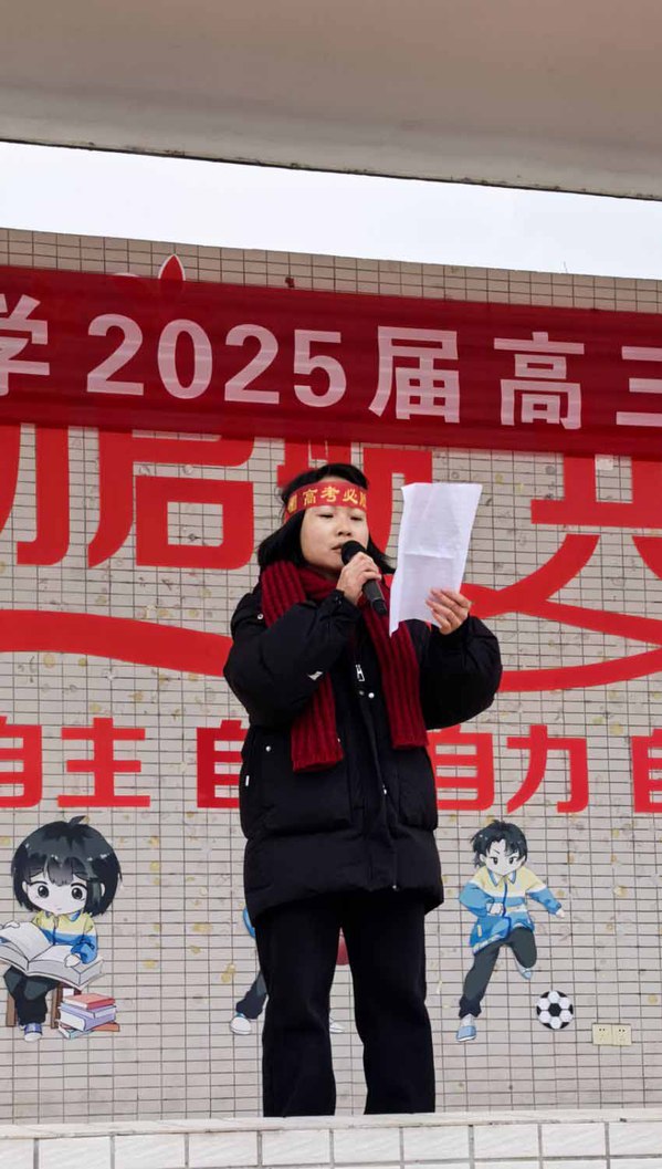 2月24日上午,KY.COM2025届高三年级全体师生齐聚操场,隆重举行高考百日冲刺誓师大会,为即将到来的高考做最后的冲刺准备。大会由高三年级组精心策划,全体师生、家长代表共同参与,现场气氛热烈,振奋人心。 大会在庄严的升旗仪式中拉开帷幕。高三国旗班的同学们精神抖擞,伴随着雄壮的国歌声,五星红旗冉冉升起,全体师生肃立注目,心中充满了对未来的无限期待与坚定信念。 随后,教师代表李小湄老师上台发言,她回顾了同学们三年来的成长历程,并鼓励大家在最后的百日里,坚定信念,脚踏实地,勇敢追梦。她表示,全体高三教师将一如既往地陪伴在同学们身边,为大家保驾护航,助力每一位学子圆梦高考。 (图:教师代表发言) 52班张志鹏同学的家长作为家长代表发言,他表达了对学校和老师们的衷心感谢,深情回顾了孩子们长大的点点滴滴,并鼓励全体高三学子在最后的冲刺阶段,保持积极心态,勇敢面对挑战。家长们永远是同学们前进道路上最坚实的后盾。 (图:学生家长代表发言) 学生代表罗雯睿同学上台发言,她分享了自己备战高考的心路历程,并号召全体同学在最后的百日里,全力以赴,不负青春,不负梦想。她的发言铿锵有力,充满了对未来的信心与决心,赢得了全场师生的热烈掌声。 (学生代表发言) 随后,各班依次上台宣誓。同学们高举右拳,庄严宣誓,誓言铿锵有力,响彻云霄。每一句誓言都饱含着对高考的坚定信念与必胜决心,展现了高三学子昂扬向上的精神风貌。 在李超进副校长的带领下,全体高三教师庄严宣誓。他们承诺将以最饱满的热情、最专业的教学、最无私的奉献,陪伴同学们走过最后的百日征程,助力每一位学子实现梦想。教师们的誓言铿锵有力,彰显了他们对学生的深情厚谊与责任担当。 各班领誓人将誓词郑重交给彭校长和杨书记,接受校长和书记的嘱托。彭校长、杨书记用简短有力的话语鼓舞着高三学子的斗志,勉励他们书写属于自己的辉煌篇章。 最后,全体同学在操场中央的宣言板上郑重签名,表达了对高考的坚定信念与必胜决心。每一个名字都承载着同学们的梦想与期望,成为他们冲刺高考的见证与动力。 此次百日誓师大会,不仅是一次鼓舞士气的动员会,更是一次凝聚力量的集结号。相信在全体师生的共同努力下,2025届高三学子必将以昂扬的斗志、坚定的信念,迎接高考的挑战,书写属于自己的辉煌篇章! 供稿:王志强 审核:党政办