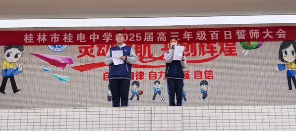 百日竞渡,舞动山河——桂电中学举行2025届高三百日冲刺誓师大会时间:[2025-02-25] 来源:桂电中学 点击数:10