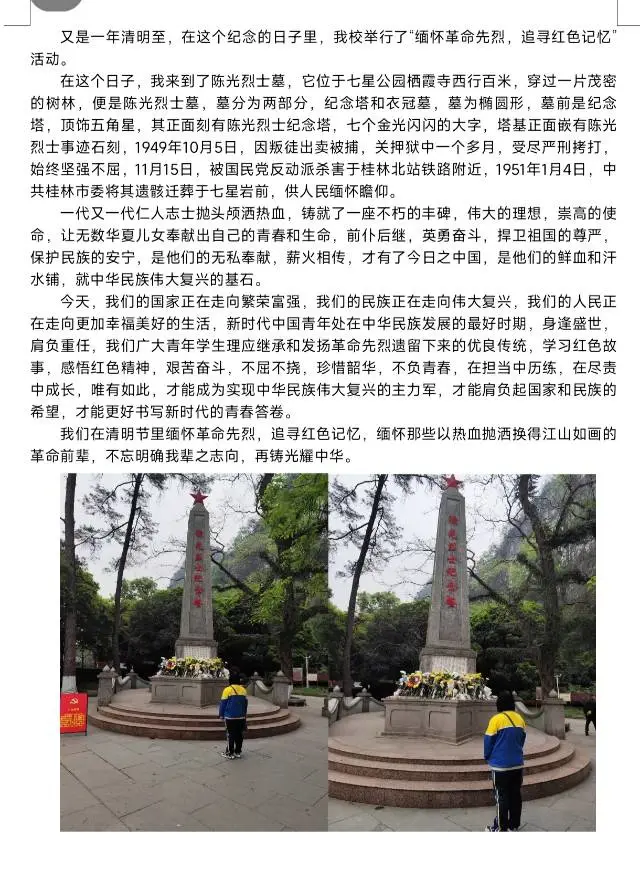 缅怀民族革命先烈,追寻桂林红色记忆时间:[2025-04-09] 来源:桂电中学 点击数:10