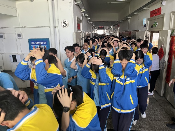 9:30避险警报响起,全校师生立即停止活动,学生们迅速蹲到课桌旁,用书本护住头部,模拟地震发生时的紧急避险。9:31 疏散警报拉响,学生在老师引导下弯腰低姿、沿预定路线快速撤离,全体师生安全抵达操场集合点。 疏散演练最后,校长助理周维霞对此次演练活动作了点评和总结,并希望全体师生以这次疏散演练为契机,进一步增强安全防范意识,防患于未然。 此次应急疏散演练活动,不仅提高了师生们的防灾减灾意识和应急避险能力,桂电中学、桂电附属学校将以此次演练为契机,持续加强校园安全教育,常态化开展各类应急演练活动,不断提升师生的安全意识和应对突发事件的能力,为全体师生的生命安全和校园的和谐稳定保驾护航! 供稿:邓玉婷 审核:政教处