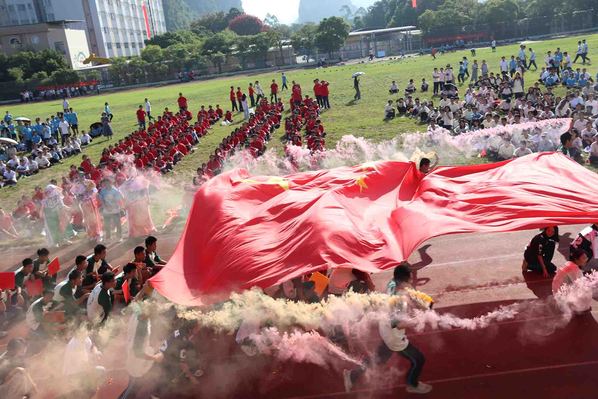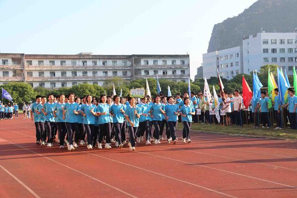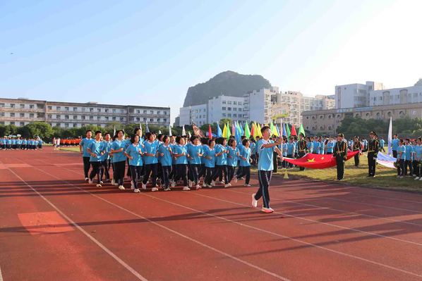 绿茵场畔青春聚,逐梦今朝竞风流。 当金秋的阳光轻轻洒满操场, 当飒爽的秋风拂过校园里一排排挺拔的青树 那些历经春夏滋养、愈发枝繁叶茂的生命, 正像极了在场的每一位少年。 9月28日,桂林市桂电中学第十五届暨桂电附属学校第三届田径运动会正式拉开帷幕。全体师生齐聚这片充满活力的赛场,共同赴一场关于青春、关于拼搏的盛会。 上午7时,运动会开幕式在激昂的旋律中拉开帷幕。国旗队步伐铿锵,护卫着庄严的五星红旗率先入场,彩旗队、花束队紧随其后。他们凝聚着全体师生的爱国情怀、对党的忠诚、对学校的热爱与对运动精神的崇高敬意。 各班方阵依次跑过主席台,整齐的步伐、铿锵的气势、昂扬的身姿,伴随着震天响的口号,展示着桂电中学、桂电附属学校学子的青春与活力! 副校长文向东致开幕辞。他指出体育承载着国家强盛、民族振兴的梦想,丰富的体育活动是落实“立德树人”根本任务、促进学生全面发展的重要途径。桂电中学、桂电附属学校始终坚持“五育并举”,将体育作为育人工作的重要环节,不断优化体育教学,丰富体育活动,营造积极参与锻炼、崇尚健康生活的校园风尚。他希望全体运动员发扬“更高、更快、更强”的奥运精神,以运动赋能青春,用拼搏书写精彩。 高90班李思远同学作为运动员代表宣誓,他表示将遵守比赛规则,尊重对手,全力以赴,争创佳绩。欧沈欣老师作为裁判员代表宣誓,他承诺将严格执裁,确保比赛公平公正。 校长彭剑波宣布桂林市桂电中学第十五届暨桂电附属学校第三届田径运动会开幕! 文艺汇演节目创意无限,精彩纷呈。各班级活力满满的舞蹈点燃激情,深情演绎的爱国节目振奋人心,各具特色的创意展示令人耳目一新。丰富多样的表演引来阵阵喝彩,充分展现了桂电中学、桂电附属学校学子的创新思维和青春风采。桂林航天工业学院探天飞行表演队、桂林信息科技学院GIRT机器人实验室分别带来航模飞机表演、机器人表演,将开幕式推向高潮。 ![]() ![]() ![]() ![]() ![]() ![]() ![]() ![]() ![]() ![]() ![]() ![]() 随着激昂的音乐徐徐落下帷幕,运动会开幕式圆满结束。在这片充满活力与梦想的绿茵场上,每一位参与者都以最饱满的姿态和最昂扬的斗志,展现青春的风采与力量。愿所有运动员在接下来的每一场比赛中,赛出风采,赛出佳绩,奋力创造属于自己的辉煌! 赛场掠影 供稿:邓玉婷 审核:政教处
