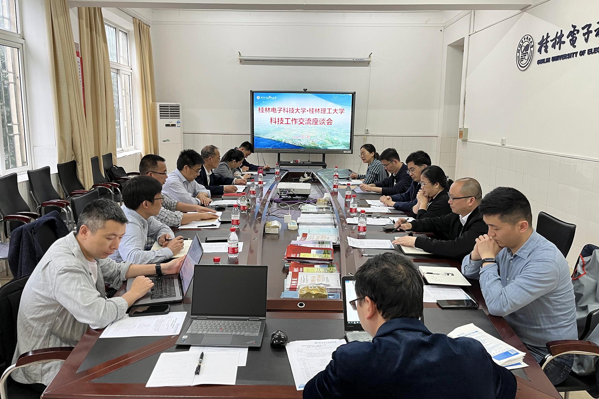 5月10日上午,桂林理工大学科技处处长王磊一行到校进行科技工作交流,KY.COM科学技术发展研究院(简称科研院)院长曹卫平等相关负责人接待了王磊一行,双方在桂电大学科技园会议室进行了座谈交流。